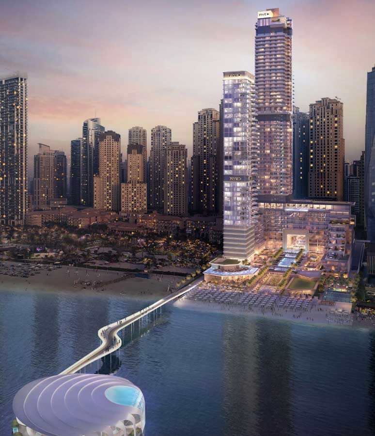 Five Luxe JBR is a ultra-luxury, twin-tower residential development developed by Five Holdings in the most iconic beachfront location in Dubai: Jumeirah Beach Residence (JBR). It is a statement project designed to redefine luxury living by combining a prime location with unparalleled amenities and bold, contemporary design.